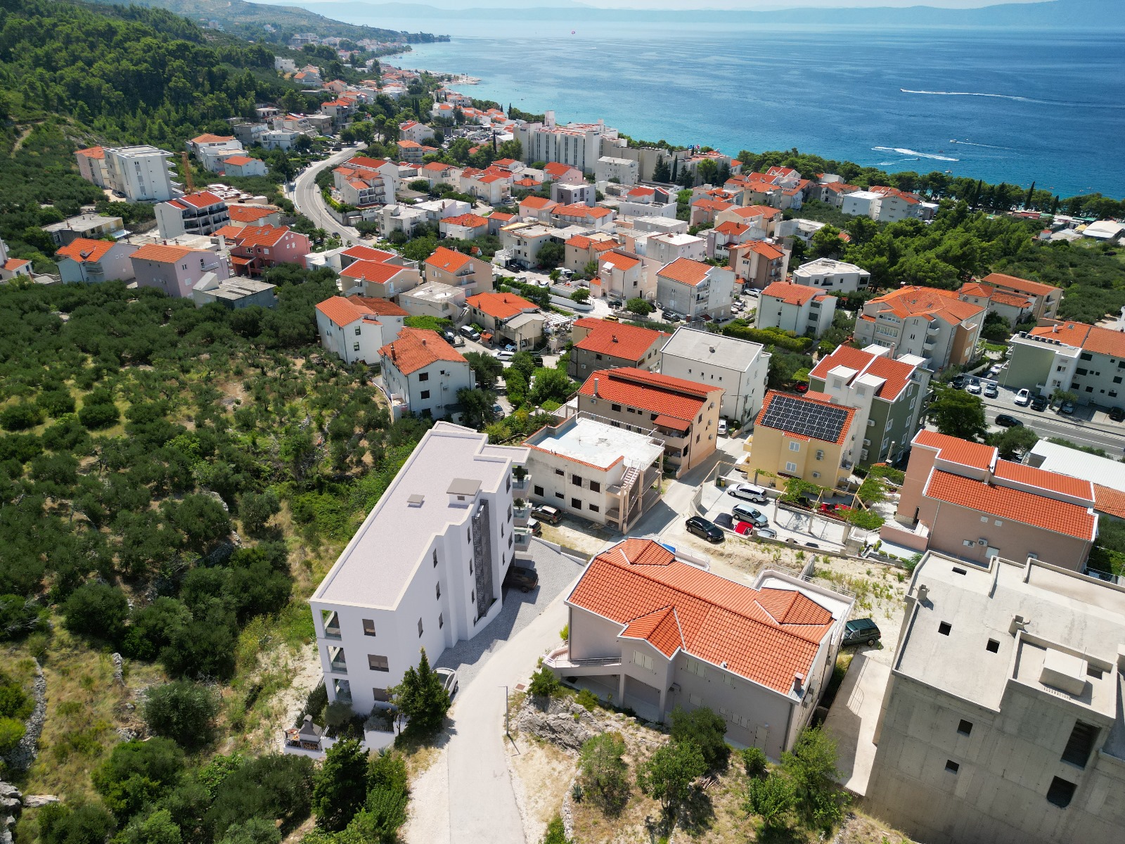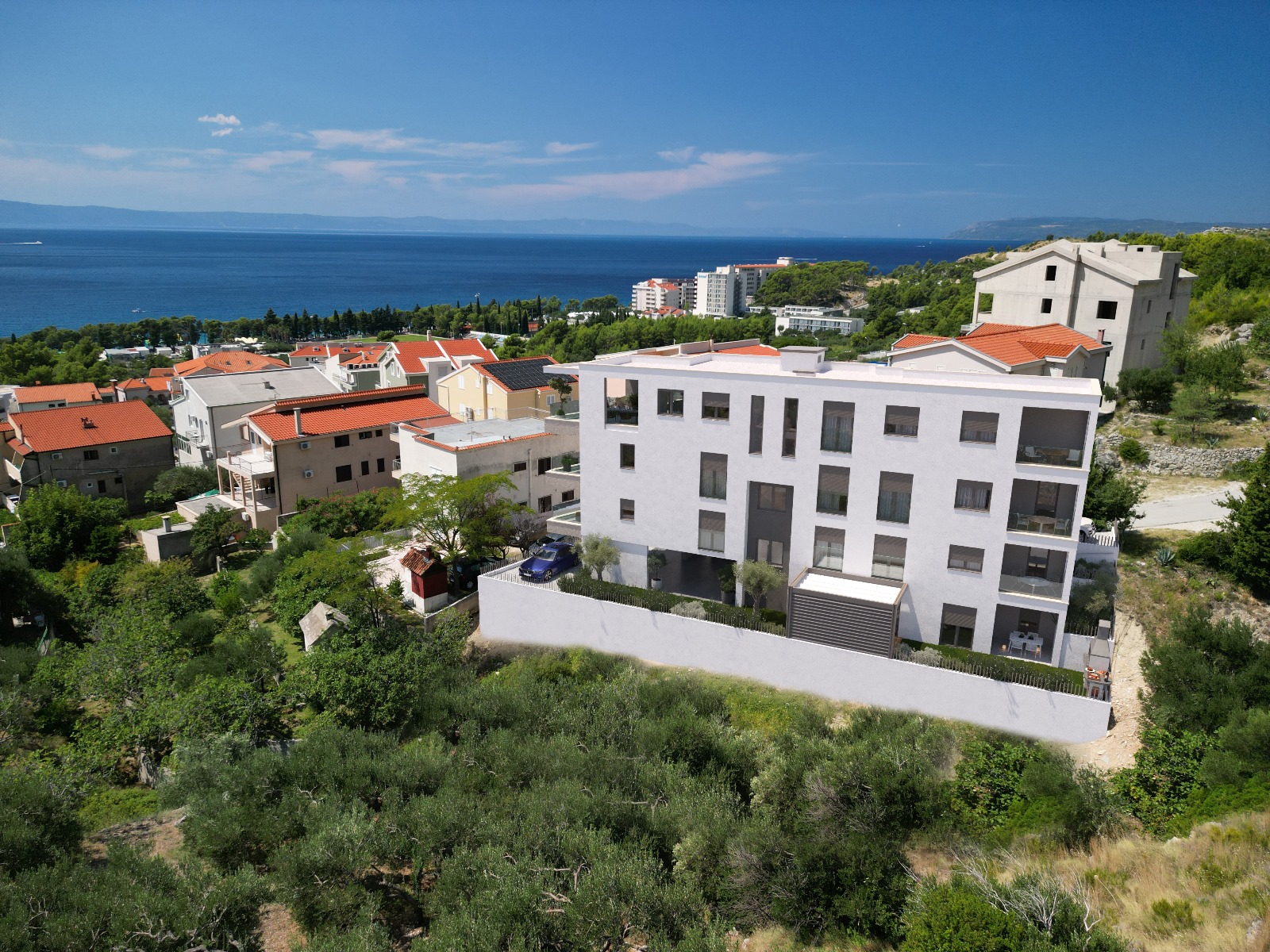 Tucepi, a new project with two-bedroom apartments in a small residential building with an elevator. The building consists of a ground floor and three floors. The building will be located in a quiet location, from the sea and the beach 390m. The object will be built to the highest standards of construction and equipment (entrance security doors, superior external thermal and sound insulation, five-chamber exterior openings, first class ceramics and parquet, air conditioning, glass fences on balconies, equipped bathrooms). Price of outdoor parking space: 5000 euro. All apartments on the floors will have an open sea view.