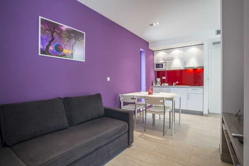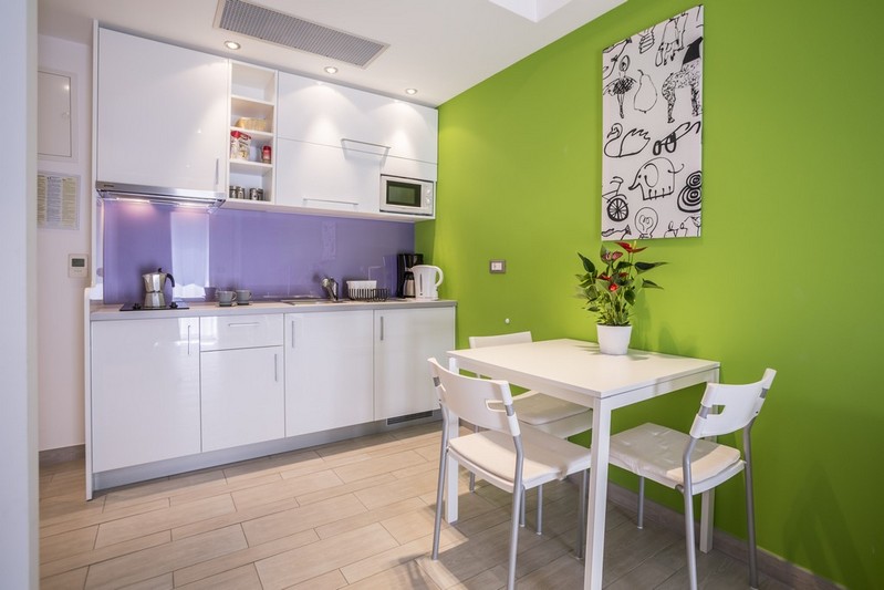 On the ground floor there are two apartments that consist of a bedroom, a kitchen, a living room with a dining room and a bathroom.
