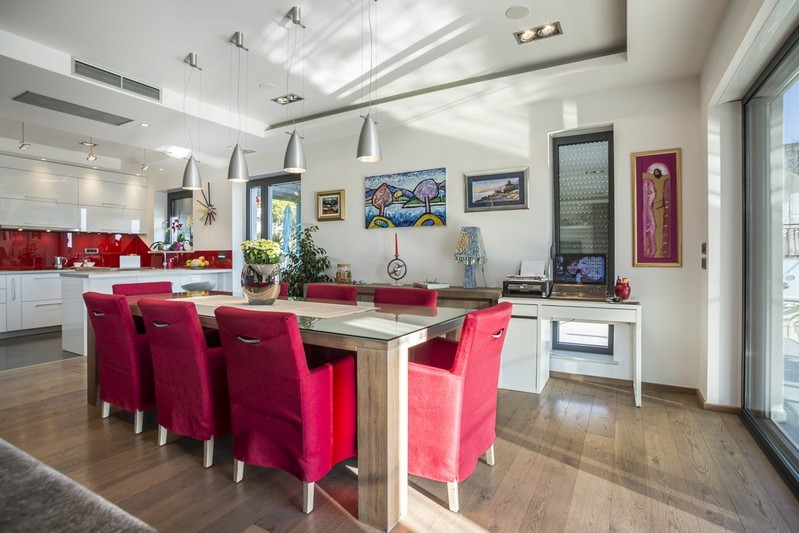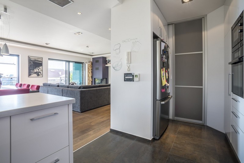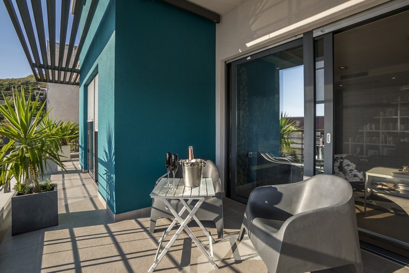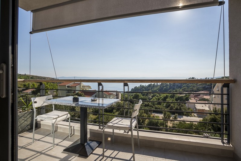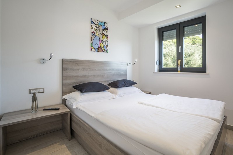 On the first floor there is a spacious three bedroom apartment for the owner, consisting of a modern and decently equipped kitchen with dining room, living room, central bedroom, two smaller bedrooms and three bathrooms. From the living room you can access the south balcony from which you can enjoy a beautiful view of the sea.