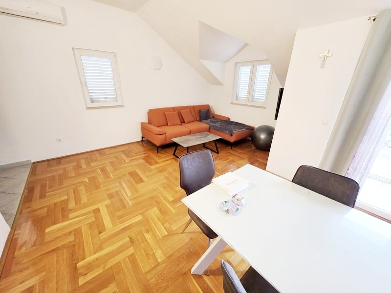 Makarska, jednosoban stan na drugom katu manje stambene zgrade. Stan je ukupne površine 51m2 te se sastoji od prostranog dnevnog boravka s kuhinjom i blagovaonicom, južnog balkona s otvorenim pogledom na more, spavaće sobe i kupaonice. Stan je u odličnom stanju, namješten i opremljen te se takav i prodaje. Stanu pripada vanjsko parkirno mjesto.