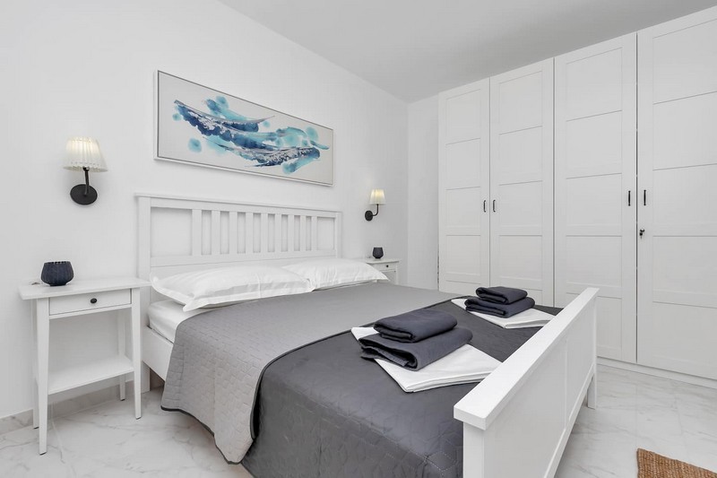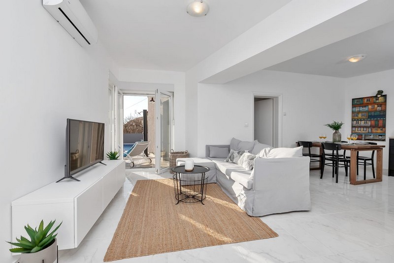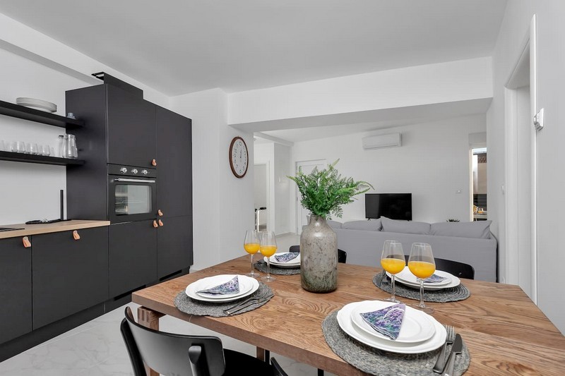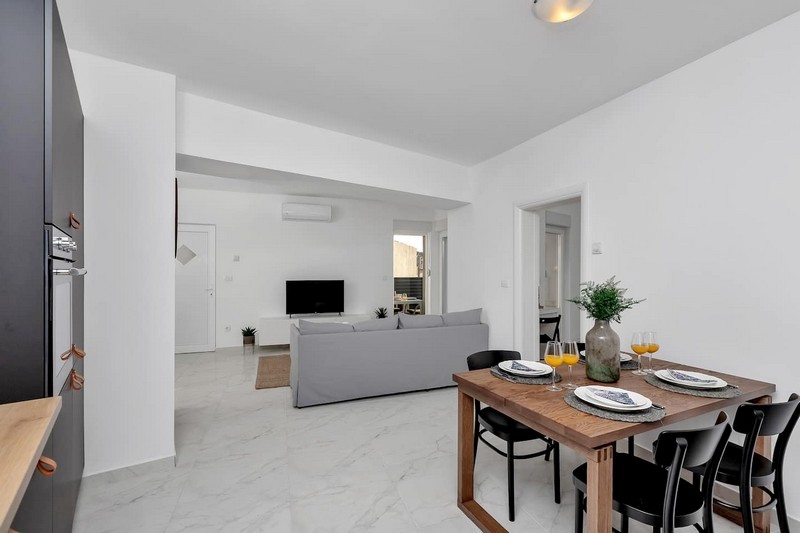 Prekrasan dvosoban stan s bazenom u samom centru grada. Stan se nalazi u prizemlju objekta u kojem su smještena samo dva stana. Stan je ukupne stambene površine 63,39m2 i sastoji se od dnevnog boravka s kuhinjom i blagovaonicom, dvije spavaće sobe, dvije kupaonice, terase površine 53m2 na kojoj se nalazi vanjski bazen površine 16,69m2. Stan je decentno namješten i opremljen te se takav i prodaje. Stanu pripada parkirno mjesto. Stan je od mora udaljen: 250m.