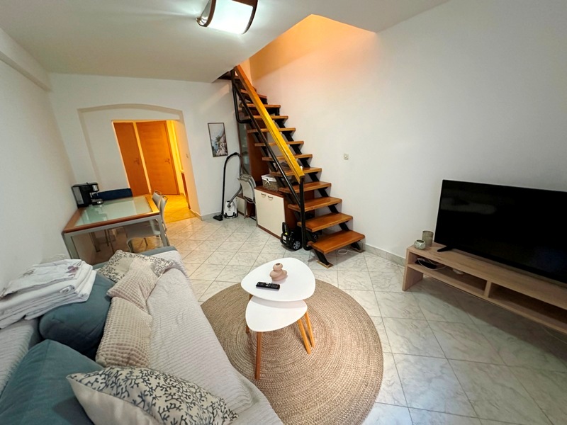 Jednosoban dvoetažan stan na atraktivnoj i mirnoj lokaciji, u strogom centru Makarske. Nekretnina je 200 m udaljena od mora, a svi potrebni sadržaji za život (odmor) dostupni su u krugu od 100 m.
