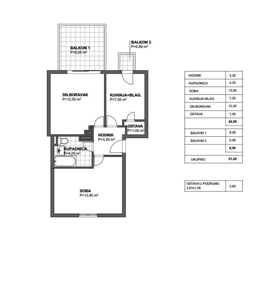 Jednosoban stan u manjoj stambenoj zgradi u istočnom dijelu grada ( Dugišu ). Stan je ukupne prodajne površine 49m2, orijentacije zapad/istok. Stan se sastoji od predsoblja, prostrane spavaće sobe, kupaonice, dnevnog boravka s zapadnim balkonom površine 8.05m2, kuhinje s blagovaonicom i ostavom te manjim balkonom površine 0,90m2. Stanu pripada dodatna ostava površine 3.60m2 koja se nalazi u prizemlju objekta. Stan se nalazi na odličnoj lokaciji, u blizini vrtića, škole, trgovina, trgovačkog centra i sportskog centra, od rive i mora udaljen 550m. Sam objekt je u fazi etažiranja.