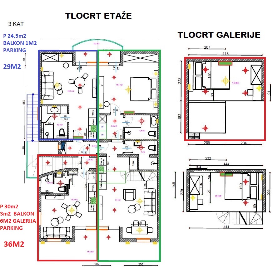 Manja garsonjera na trećem katu objekta s 8 stambenih jedinica. Garsonjera se nalazi na trećem katu te je sjeverno orijentirana, ukupne je površine 24,5 m2 stambene površine, 1 m2 balkona (prema koeficijentu 0,5) – parkirno mjesto 3 m2 (prema koeficijentu 0,25) ukupno 29 m2