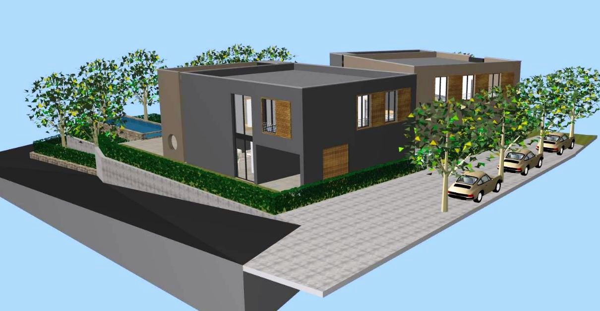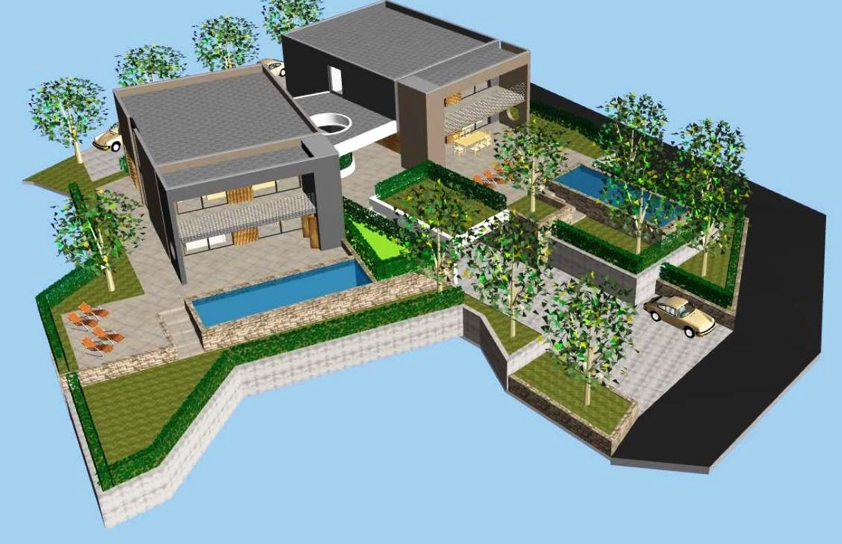 Posredujemo u prodaji zemljišta u Zagvozdu , predio Alagići. Zemljište je ukupne površine 1414m2. Prema gređavinskim dozvolama na ovom zemljištu je predviđena gradnja dvojnog objekta s vanjskim bazenima. Objekti su povezani zajedničkim vanjskim stepeništem te se sastoje od prizemlja u kojem su smještene garaže i manji studio apartmani, te dva kata. Na prvom katu se nalazi prostrani dnevni boravak s kuhinjom i blagovaonicom, izlazom na vanjsku terasu. Na drugom katu su smještene četiri spavaće sobe s kupaonicama te prostranim balkonom. Zemljište se nalazi u mirnom susjedstvu s novim vilama.s
